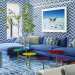 Gray Tile Bathrooms With Colorful Walls